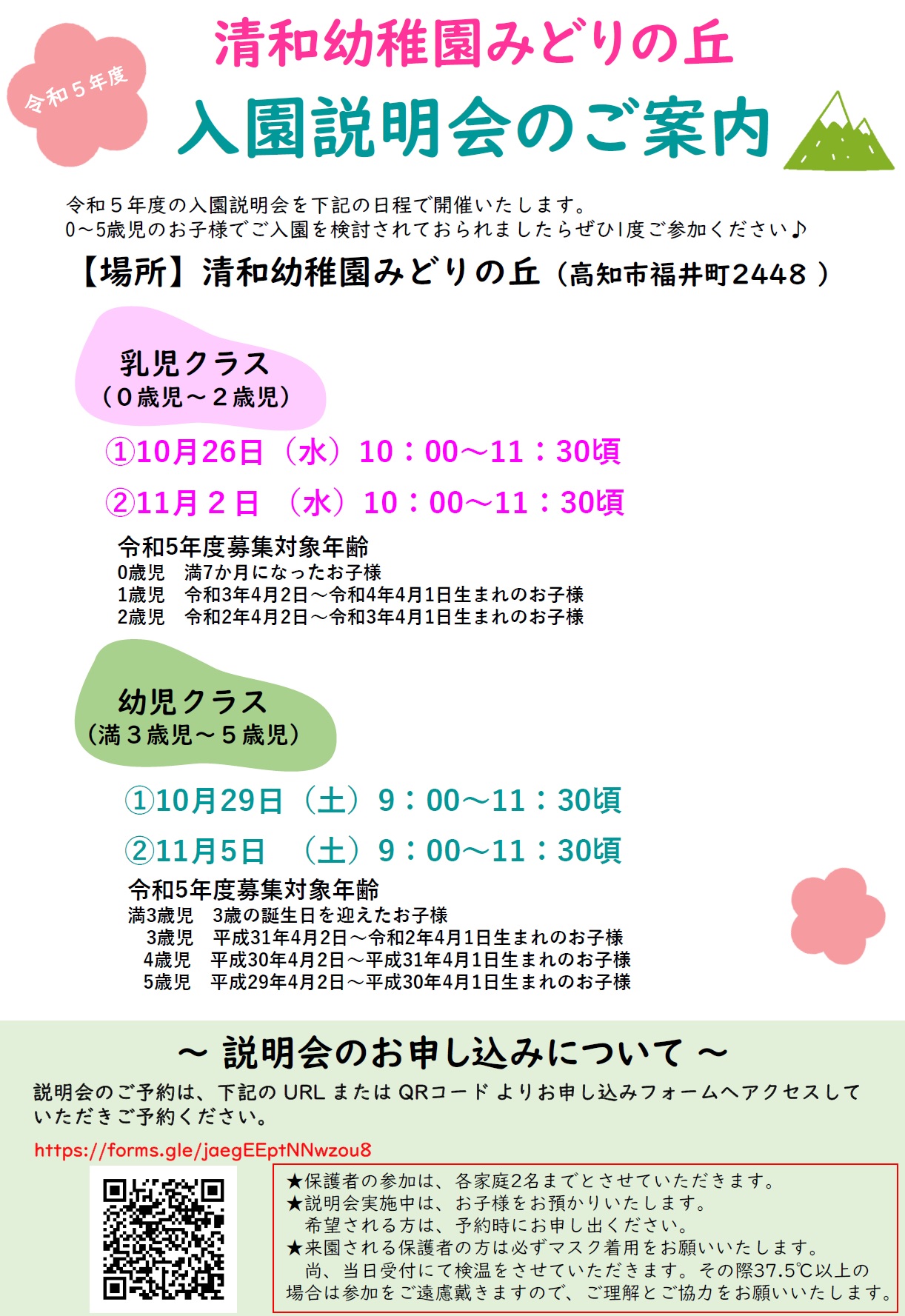 令和5年度_清和幼稚園みどりの丘_入園説明会のご案内