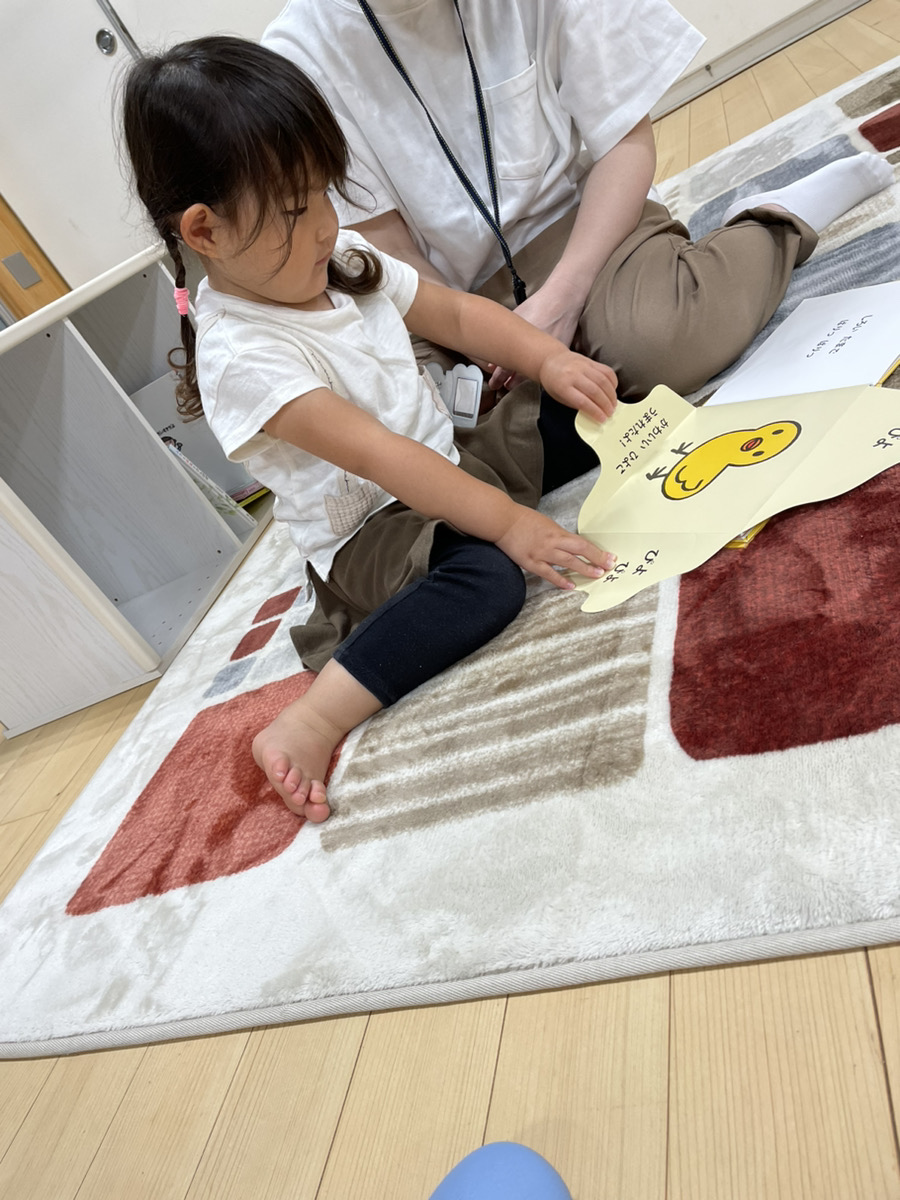 片付けをした後は、皆で集まって手遊びや歌、紙芝居を楽しみました。
